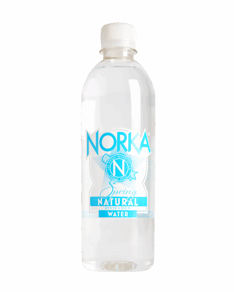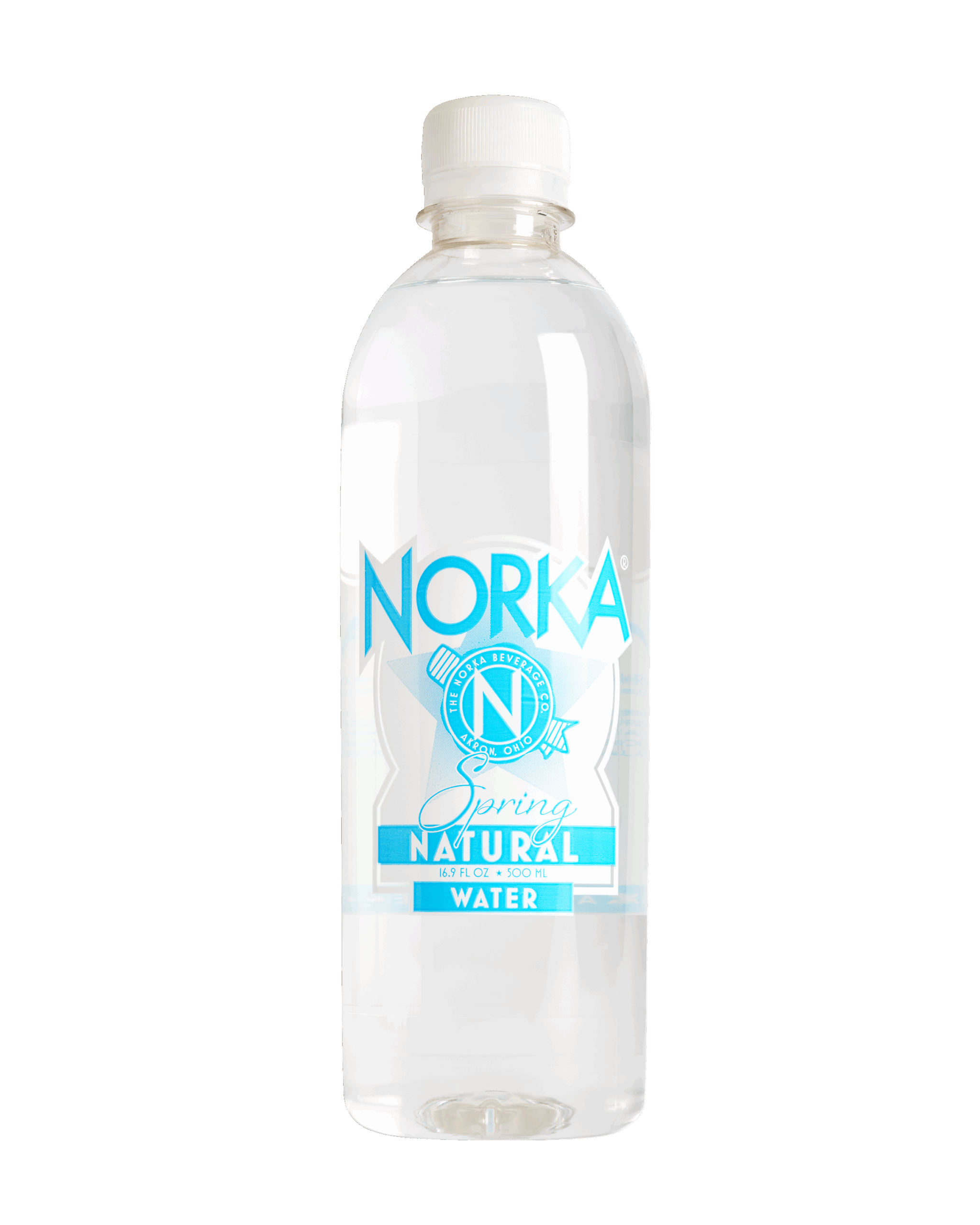 100% pure natural spring water – never treated with additives. Premium firm 16.9oz bullet-style bottles with tamper-evident caps. Locally sourced and bottled, supporting local communities. Clean. Crisp. Refreshing. From the trusted NORKA brand (est. 1924, Akron, Ohio)